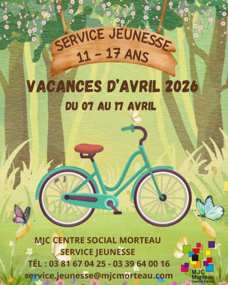 Activités 11 – 17 ans Le Service Jeunesse sera ouvert : 7 AU 17 AVRIL 2026 de 7h à 17h30 Inscriptions à la journée Les activités commencent à 10h et se terminent à 16h30 (sauf cas particulier, voir programme) PROGRAMME : Téléchargez le programme. LES INSCRIPTIONS SUR LE PORTAIL FAMILLE SONT OUVERTES. Inscriptions sur le …